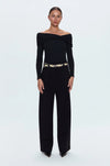 A tailored trouser, Eden features a high rise, sharp pleats, and a fluid wide leg for a modern take on classic tailoring. Cut from ponte fabric with subtle stretch, it balances structure and comfort for polished ease. Night Out, a deep black shade, offers timeless versatility from desk to dinner.