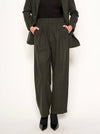 Enhance your fall-winter look with the Evie pant, designed with a relaxed fit and convenient side pockets. The charming Green Stripe fabric adds a touch of elegance, while the pleats offer a flattering, sophisticated silhouette.