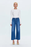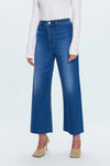 A signature silhouette with timeless appeal, Penny sits high at the waist with an ultra-wide leg and full-length 28" inseam that creates effortless balance and movement. The relaxed shape flows with ease, while the structured rise keeps proportions clean and refined. Crafted from comfort stretch fabric in Rooftop, a medium blue wash with soft fading for an easy, lived-in feel.